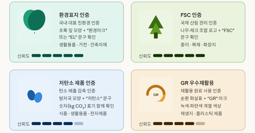 인증 마크 하나를 아는 것만으로도 불필요한 그린워싱 제품에 돈을 쓰는 일을 줄일 수 있습니다.